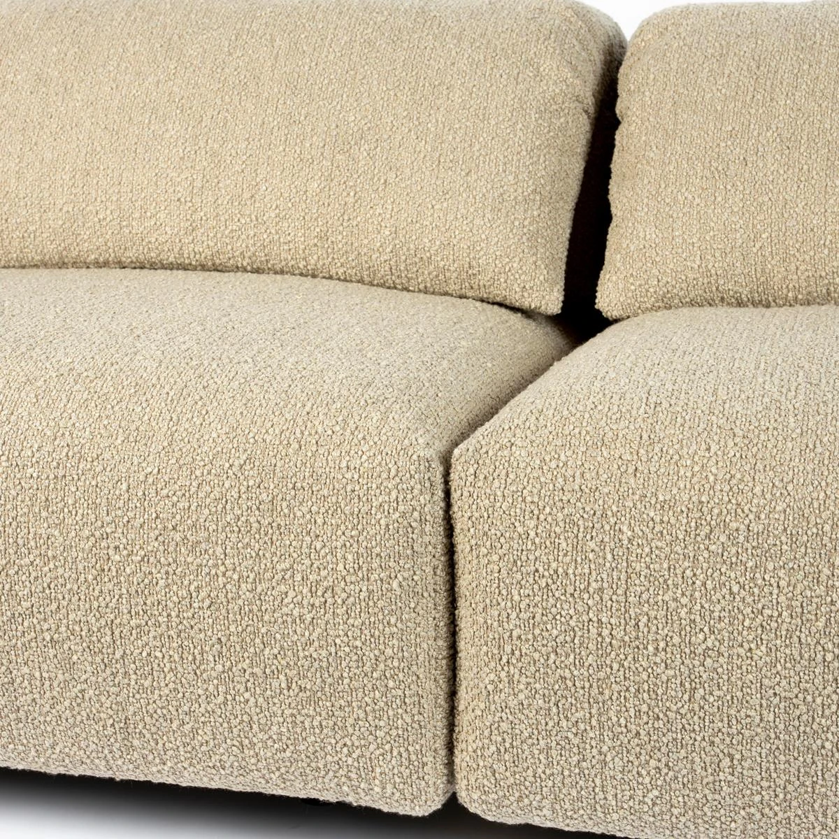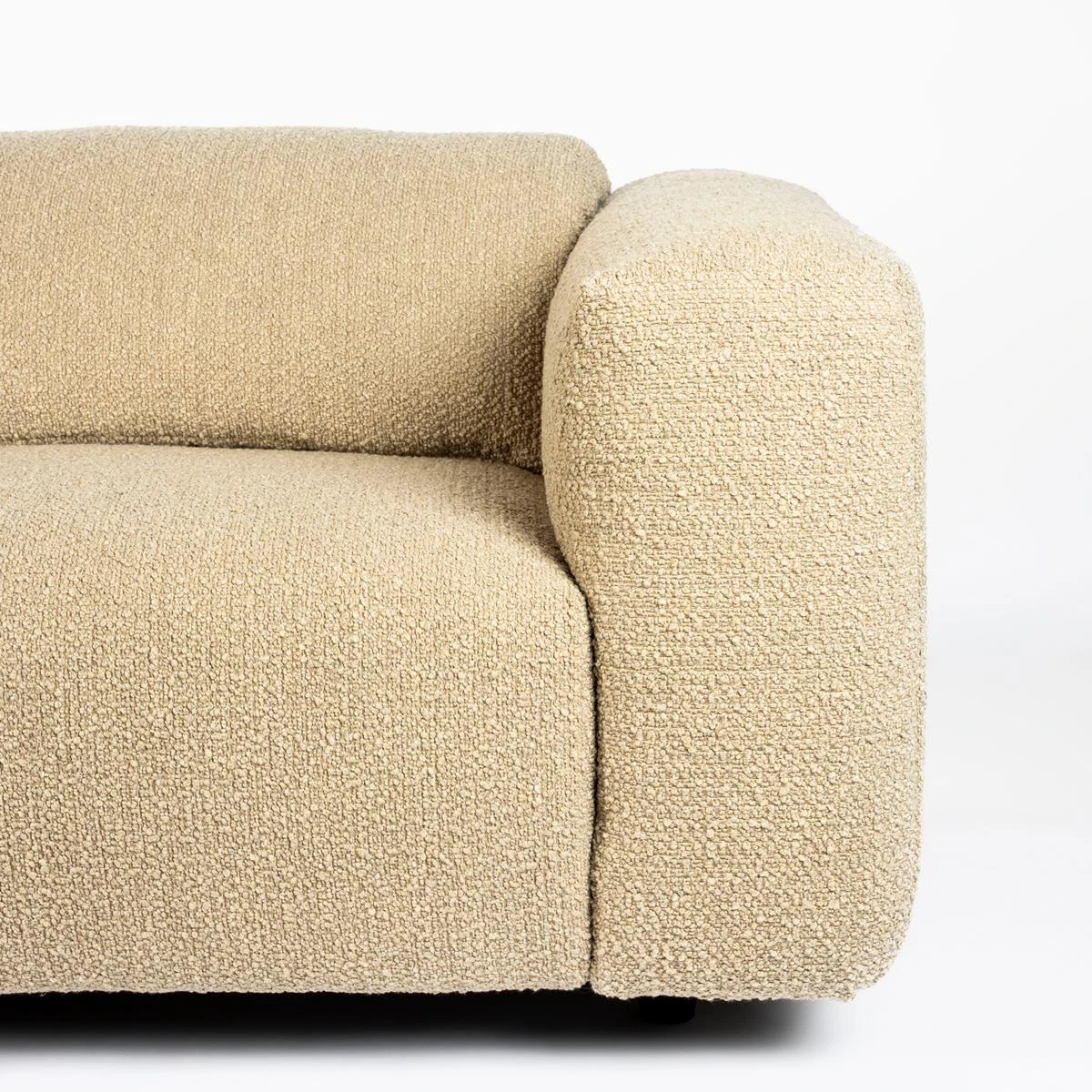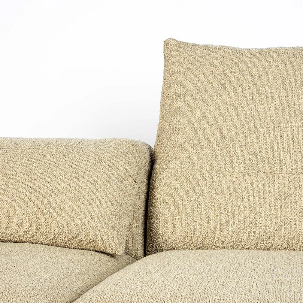 - Hij is bekleed met een bouclé stof, comfortabel en hip!